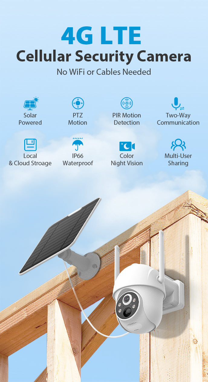 This solar security camera enables instant remote two-way communication. Easily talk and listen through your phone via the UBox app — anytime, anywhere.