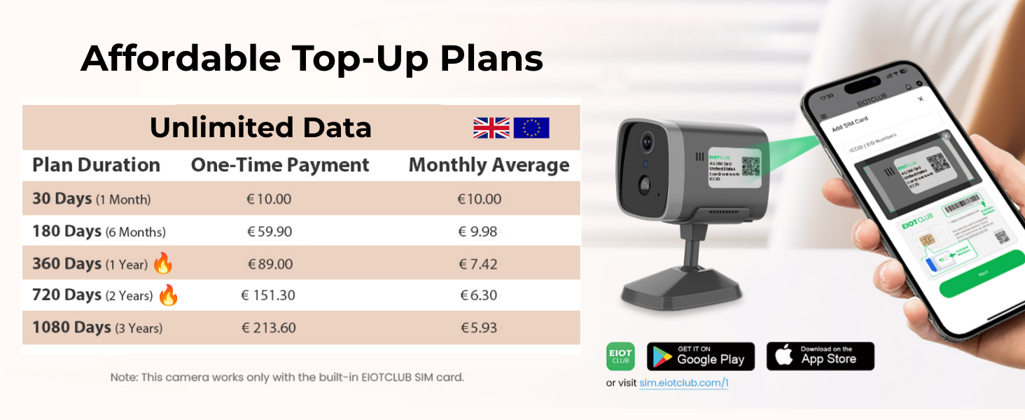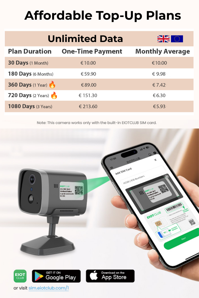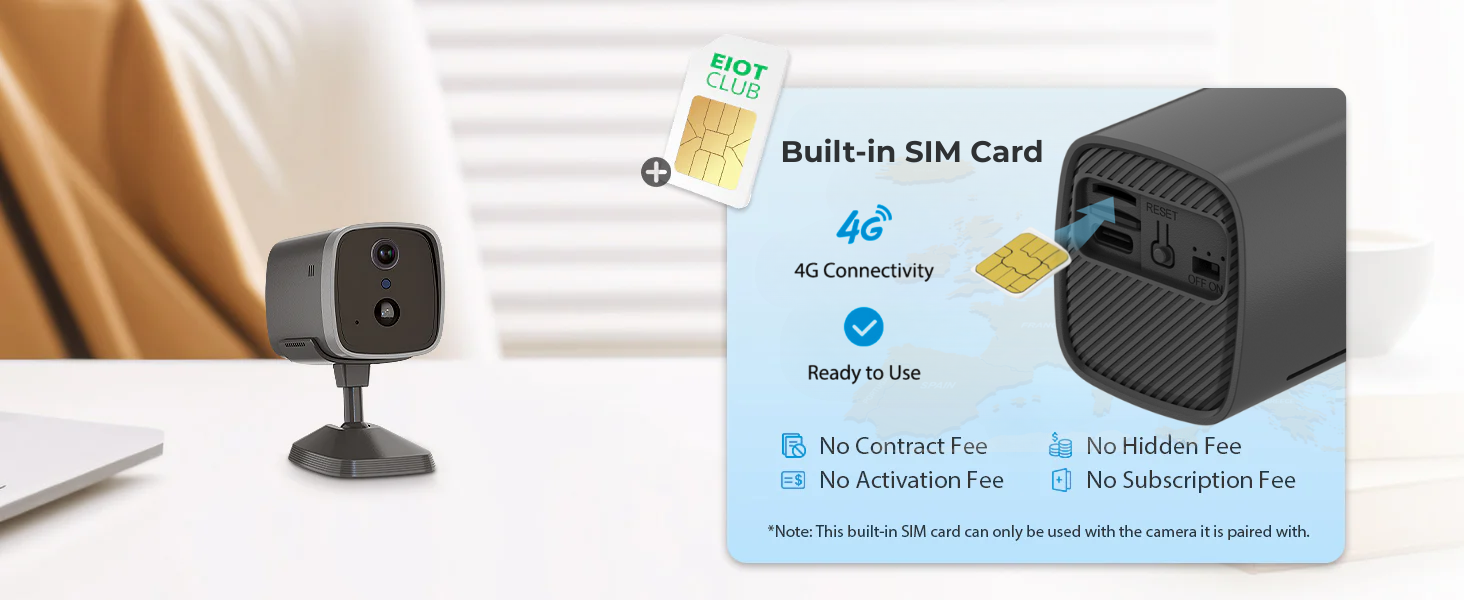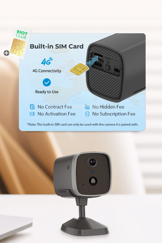 The SIM card is pre-installed and pre-activated. Just power on the camera and it will automatically connect to the 4G network—no manual setup needed.