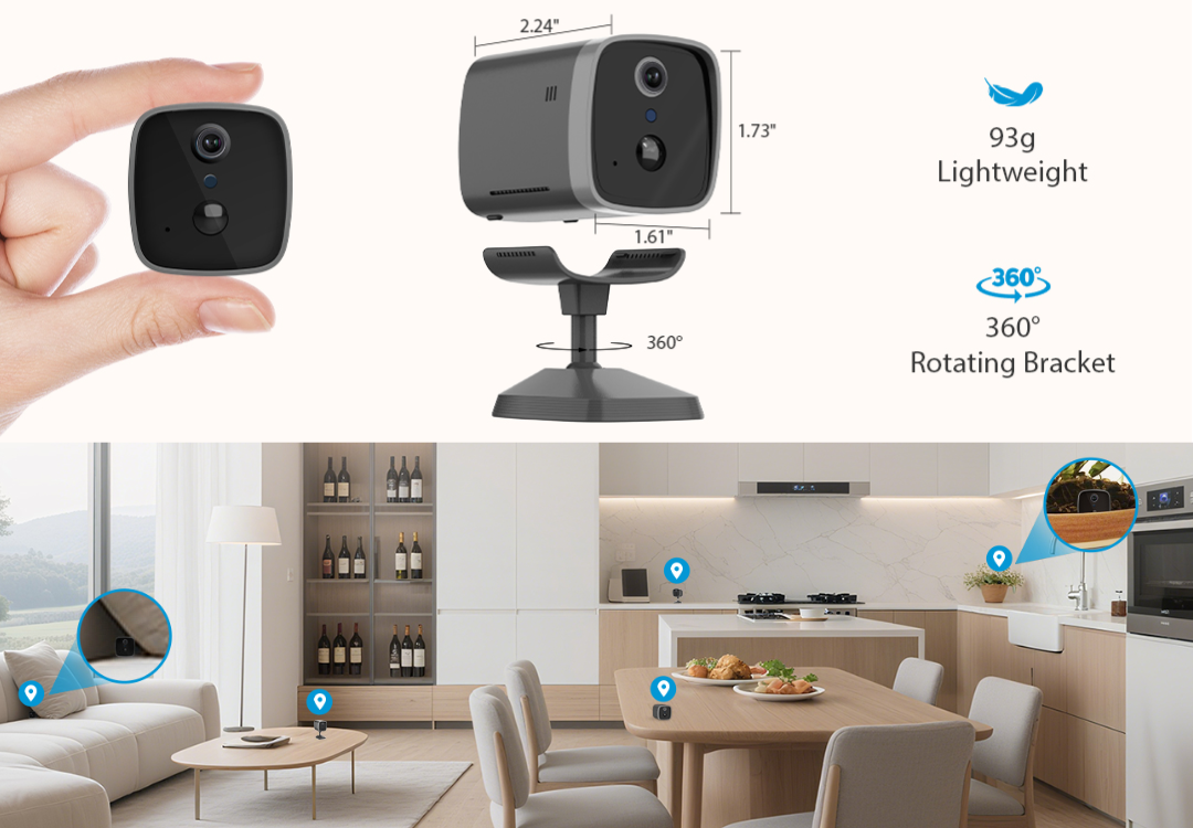 With its compact design and rotating detachable mount, this camera installs quickly where you need it—no drilling or complex wiring required. 360° rotating mount gives you more options for installation.