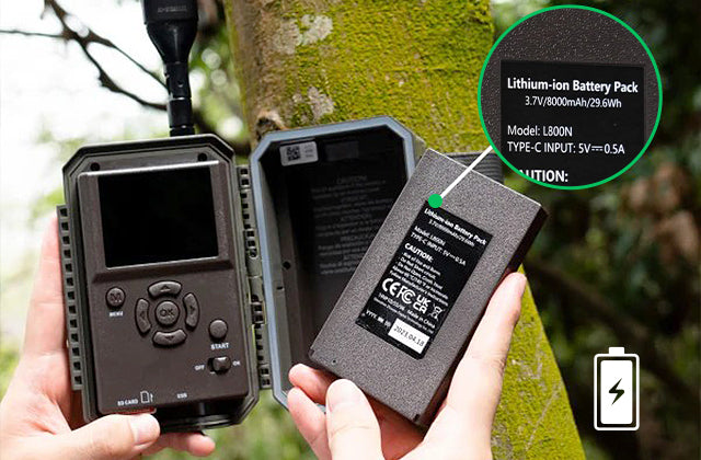 The camera is equipped with an 8000mAh rechargeable lithium battery and advanced power-saving technology, which helps conserve up to 75% of battery power for long-lasting performance.