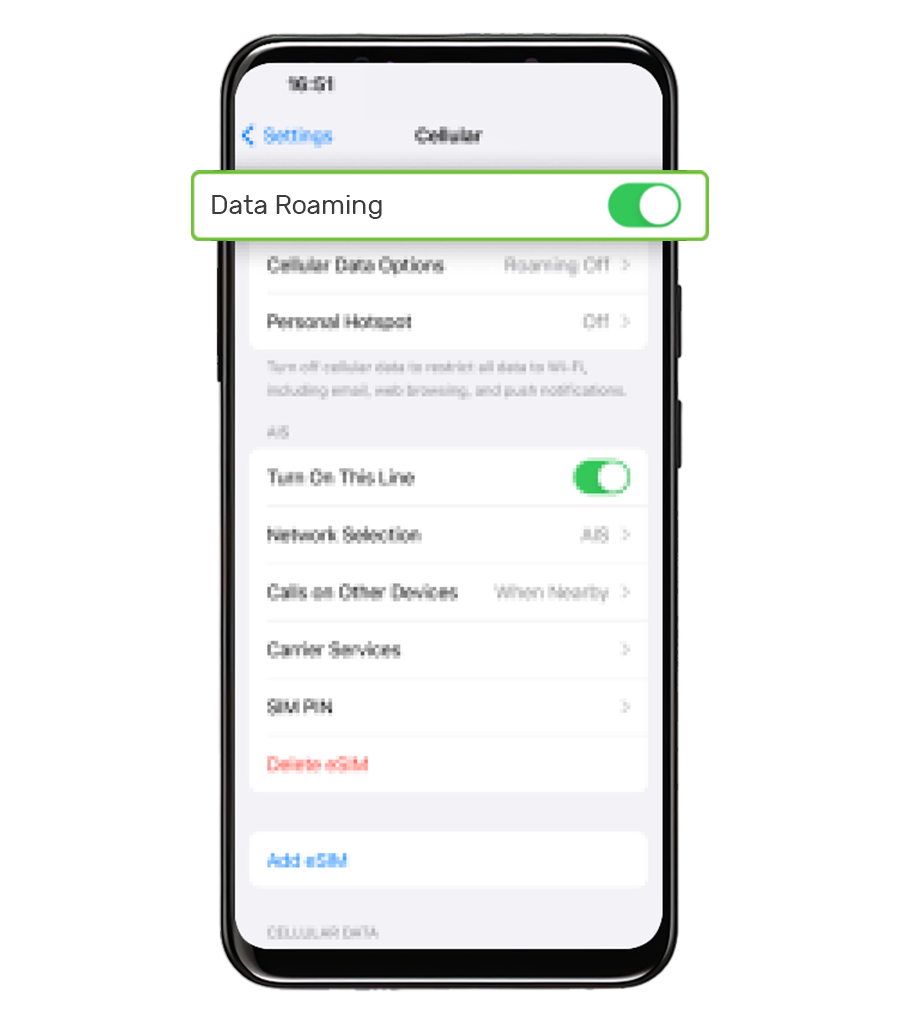 Enable Data Roaming