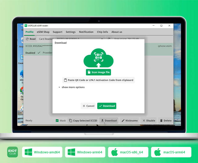 The eSIM card reader allows easy downloading and management of eSIM profiles through the EIOTCLUB eSIM Card Reader App on your computer. This innovative solution unlocks the connectivity potential of devices without built-in eSIM functionality, making it easy to expand eSIM capabilities.